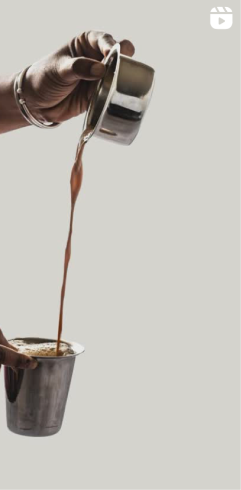 Poured hot, with a frothy finish. Sip from a tumbler or take it away.